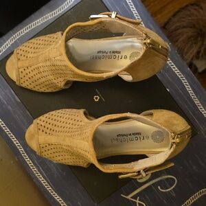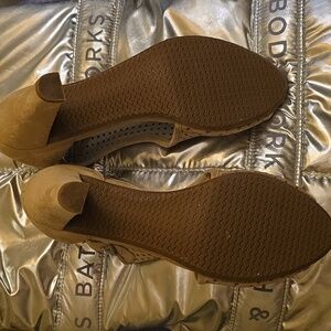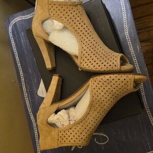 Beautiful Suede Tan Peep-Toe Ankle Boots W Zip Back Comfy And Soft