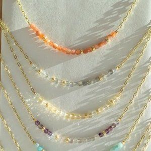Beautiful Sunstone Gemstone Beaded Necklace Gold paperclip Chain WATERPROOF