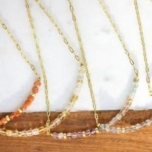 Necklace is 15" w/3" extender with 3.5 inches of Gemstone Beads 3/4mm. 14K PVD on Stainless Steel = WATER-FRIENDLY & hypoallergenic & non-tarnish. Handmade