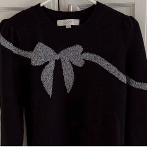Beautiful soft sweater by LOFT. Black with silver bow design. Excellent near new condition. Worn only once to a holiday party. Smoke free home.