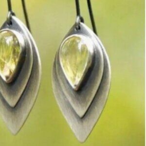 Beautiful Synthetic Yellow Tourmaline & Silver Electro-Plated Dangle Earrings
