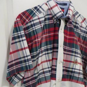 Vintage 90's Era TOMMY HILFIGER Shirt - Button Down / Short Sleeve - Unique 2 Tone Design - Tag shows size as M/M - Men's Medium - Looked over entire shirt - no flaws seen or noticed - Even the white on the bottom is still WHITE - Listing Size as listed on Manufacturers Tag - M / M - I do not Measure - Not responsible far varying fit sizes from manufacturer to manufacturer.