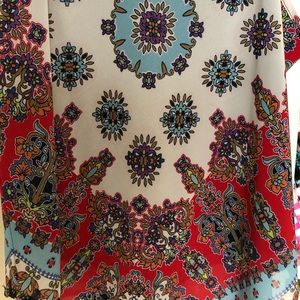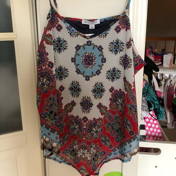 a beautiful tank! flowy and super flattering! has the prettiest pattern and colors perfect for spring and summer time :) got as a present and never wore it so it is in perfect condition with the tags still on!
