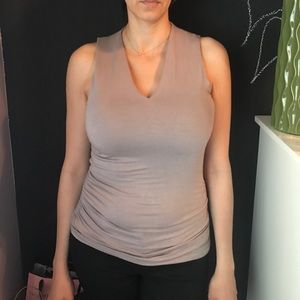 Brand new. Fits amazing! Super soft material. Sinches on the sides. V neck fit in the front. Like new!