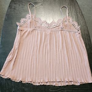 beautiful blush pink or maybe like a dusty rose color top. very flowy, super flattering. lace detail around the neckline. adjustable straps