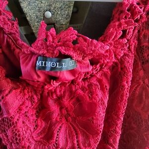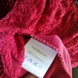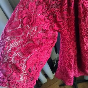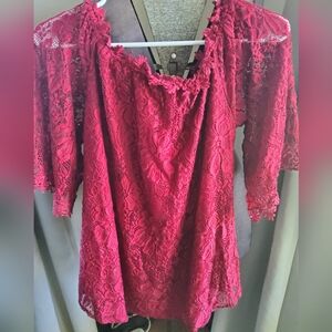 Red, floral design, vintage blouse. Lace sleeves. Red. Floral design lace.