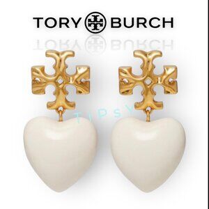 Stunning!! Tory Burch White and Gold Heart Drop Earrings!