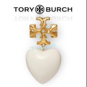 Beautiful Tory Burch White and Gold Roxanne Heart Drop Earrings