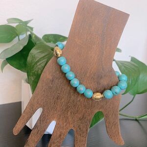 Beautiful Turquoise Beaded Bracelet with Gold Tone Buddah Beads