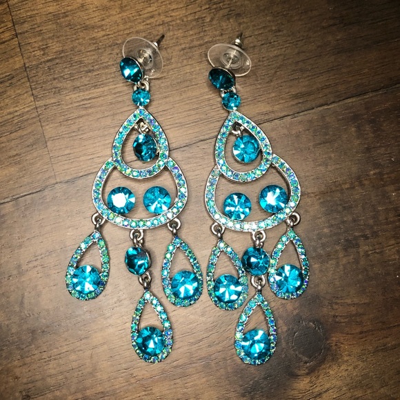 Beautiful Turquoise Rhinestone Prom Pageant Earrin