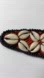 Unique belt tie belt with shell and bead design, center turquoise accents with silver ring. Features rust and black beads with shells. In excellent condition.