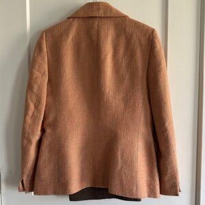 This beautiful tweed Dana Buchman pant suit in size 4 is a stylish and sophisticated choice for any woman looking to make a statement. The orange jacket & brown pants with tweed fabric add a touch of luxury to the classic pant suit silhouette. The set includes a matching jacket and pants, perfect for a coordinated and chic look. The brand's reputation for quality and style ensures that this pant suit is sure to make a lasting impression.