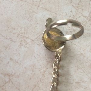 This hand chain is so cute and goes wonderfully with boho looks. Unfortunately, the chain broke in two places (see third photo). It's not too noticeable when you wear but if you think you could repair it, this is a steal. The adjustable ring also detached but I glued it back on and it should be fine (see 4th photo)