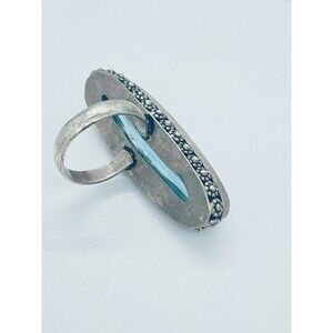 #DecoRing #VintageJewelry #SterlingSilver #StatementRing #Aquamarine #ArtGlass #Size675 #AntiqueVibes #UniqueJewelry #BoldStyle