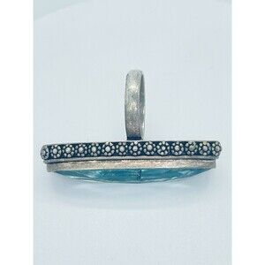 Beautiful Unique Artisan Made Antique Aqua Glass Sterling Silver Ring, Size 6.75