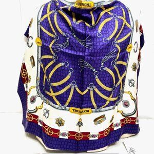 Beautiful Unused TRUSSARDI 100% SILK SCARF 34"Ivery Burgendy Purple Jewelry (67