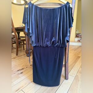 Perfect for the holidays! A beautiful velvet cocktail dress with a low-v back. Originally from Nordstrom, wore once! Doesn’t fit anymore. Color is a steel blue/navy