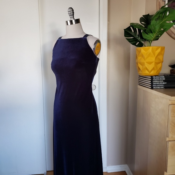 Design/Details: Showcase your silhouette in this beautiful velvet maxi dress. Draped to perfection in premium soft stretch velvet. Design also features an elegant satin back bow detail.