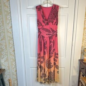 Beautiful Vibrant Pink and Yellow Chiffon Ombré Maxi Dress with Black Accents