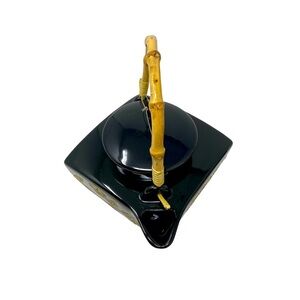 Beautiful Vintage Asian Black and Beige Floral Design Teapot Set. 5pc. New. Bamboo handle.