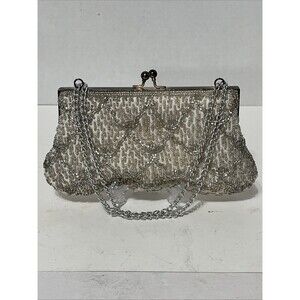 Beautiful Vintage Beaded Chandelier Style Evening Bag Handbag Clutch White