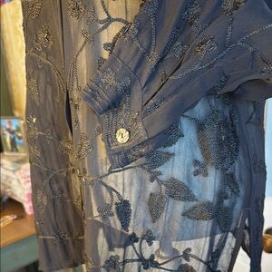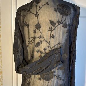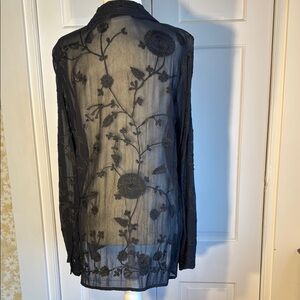 Beautiful Vintage Chico's Black Sheer Embroidered Blouse Oversized