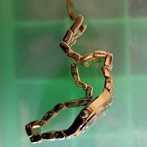 The band is a gold-plated stainless steel mesh that is silky on the skin, with a folding snap jewelry clasp that is easy to put on and remove.