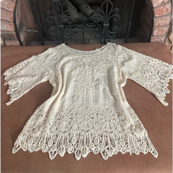 Beautiful Vintage Embroidered 100% Cotton Top unbranded L