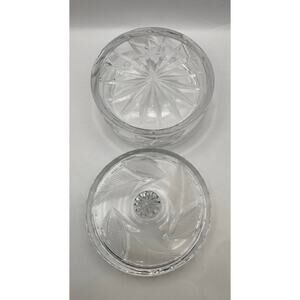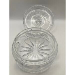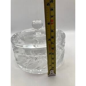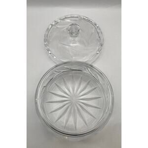 Beautiful Vintage Etched Leaf Design Lead Crystal Candy Nut Dish with Lid in Excellent pre-owned condition-please see all photos