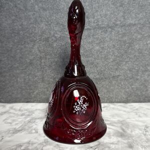 Beautiful Vintage Fenton Ruby Red Hand Painted Glass Bell Signed Freda 6.5”