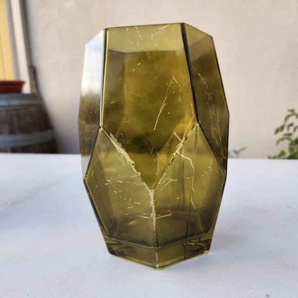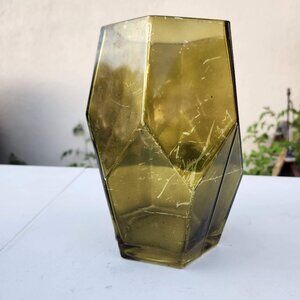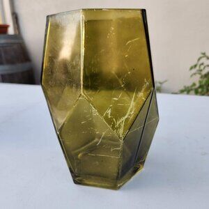 Beautiful Vintage Green Hexagon Vase Terrarium Decor Mid Century Modern Glass Rustic