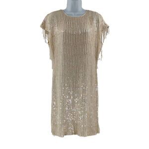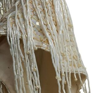 Beautiful Vintage Iridescent Cream Glass Beaded Sequin Fringe Dress | Circa 1980