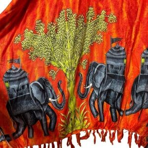 Cover-ups Long Women's Robe. Crewneck with flowy silhouette. Fringe tassels at the bottom. Shoulders and chest are free size. 100% rayon. Made in India. This is truly a one size fits most vintage dress; it will fit both straight and plus sizes.