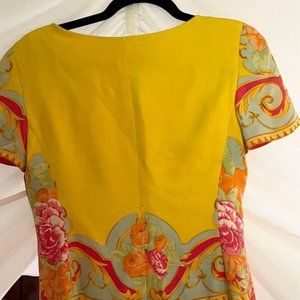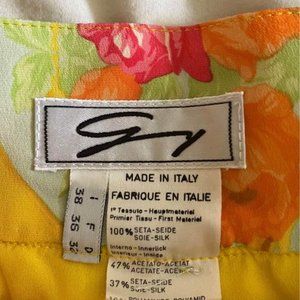 Stunning Italian vintage lemon yellow floral 100% silk two piece set! Short sleeve jacket and pleated mini pencil skirt. Italian Size 38, French Size 36. (about a US size XS). Fully lined.