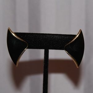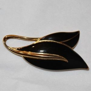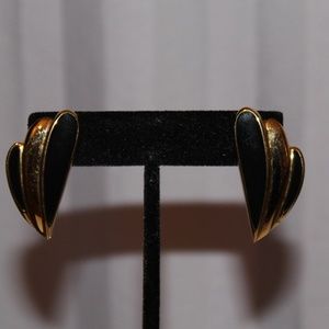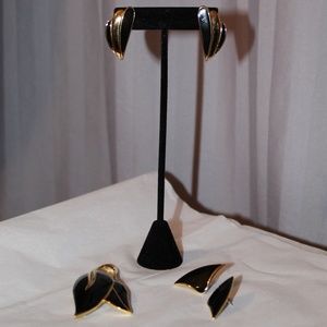 Beautiful black and gold tone enamel Trifari set - All pieces were collected separately (the earrings x2, and brooch) but match perfectly together. The earrings are pierced and all pieces and parts of earrings and brooch seem to be in excellent working order/condition. Very well taken care of and ready for many more years of stunning fun! Please see pics and I am happy to answer any questions!