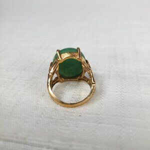 Beautiful Vintage Unique Polished Brass Bamboo Cardinal Oval Jade Stone Ring