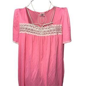 Beautiful Vintage VTG Fundamentals Nightie Nightgown 1X Pink Lace Trim SOFT Fas