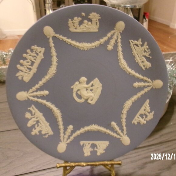 HELLO ~ UP FOR SALE IS A BEAUTIFUL GENTLY USED WEDGWOOD 9" BLUE JASPER WARE GRECIAN THEMED CHERUBS AND ANGELS PLATE ~ COOL DECORATIVE PLATE ~ NO FLAWS NOTED EXCEPT SLIGHT LIGHT RING AROUND THE MIDDLE (I DID NOT TRY TO CLEAN OFF BUT THINKING IT WOULD COME OFF) ~ JUST PARING DOWN :) PLEASE LET ME KNOW IF YOU HAVE ANY QUESTIONS ~ ALL MY ITEMS ARE CROSS POSTED ON OTHER SITES SO DON'T MISS OUT :)