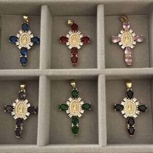 Beautiful Virgin Mary Gemstone Cross Pendant- 6 Color Options New