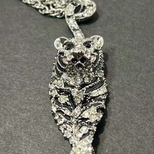 Beautiful Walking Tiger Vintage Necklace with Heavily Crusted Stones