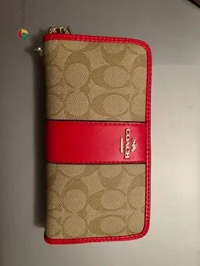 NIB beautiful red and tan zippered wallet Super cute and stylish Not associated with any brand Name for exposure