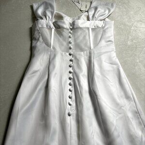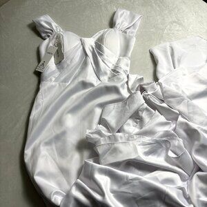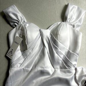 Beautiful Wedding Dress Pearly White Satin Gown Buttoned Back NWT mermaid train