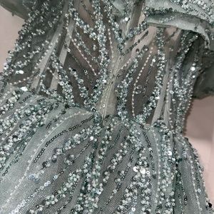 Only worn once, with normal wear signs underneath. Purchased a size 8 & altered to fit 2-4. 5’0 feet 124pds with 3inch heels. Color looks differetn in different lighting. Truest color in first professional picture.