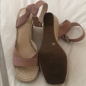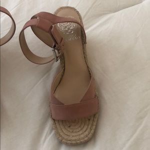 This is a pair of gorgeous Vince Camuto wedge sandals. The color is a rose. I wore them one time.