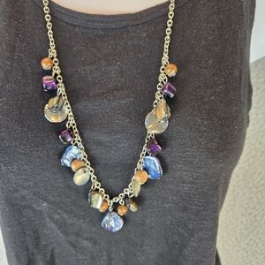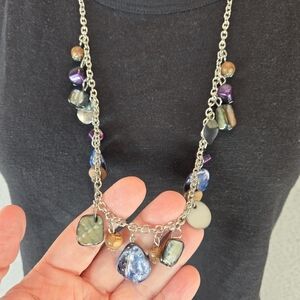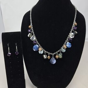 Beautiful Womens Dangle Necklace-Matching Earrings Silver Tone Adjustable Chain