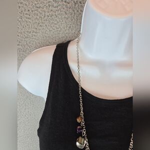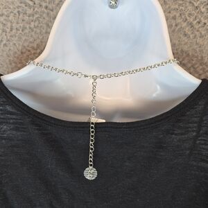 This beautiful silver tone jewelry set includes a dangle necklace and matching earrings. The adjustable chain on the necklace allows for easy customization to fit any outfit. The elegant design and theme of beauty make it a perfect accessory for any occasion. Perfect for adding a touch of glamour to any ensemble, this jewelry set is a must-have for any fashion-forward woman.