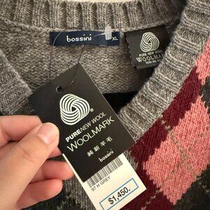 100% Bossinni Woolmark Argyle sweater. Brand new and never worn!