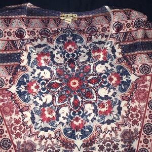 This is a NWT World Unity women’s top in Medium size. It has red shimmery details on the front and is a lightweight material.