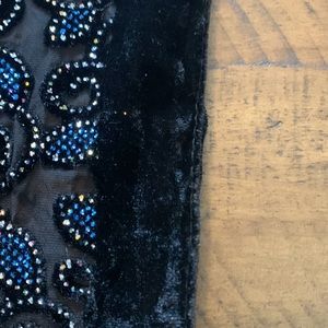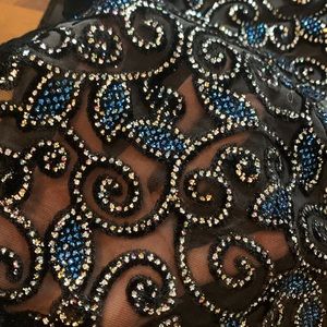 Shaw bought to go around shoulders. Worn w strapless black dress. Royal blue bling details. Just beautiful. 60” length and 20 1/2 “ wide.