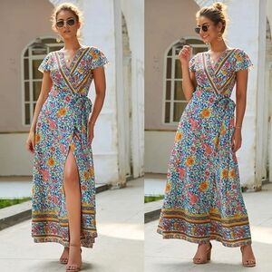 Beautiful Wrap Style Maxi Boho Dress